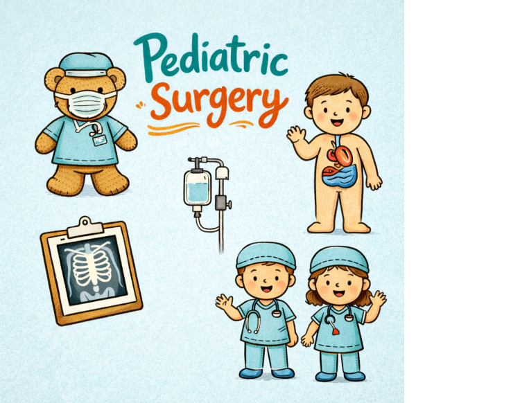 小児外科の澤井利夫です。2023年7月に当院へ異動してまいりました。 「小児外科」は、その名の通り、こどもの手術を専門に行う診療科です。小児科(内科)が薬や全身管理を中心に行うのに対し、小児外科は手術が必要な病気を担当します。ただし、こどもの病気すべてを小児外科が担当するわけではありません。心臓血管外科、脳神経外科、整形外科、眼科、耳鼻咽喉科、泌尿器科、皮